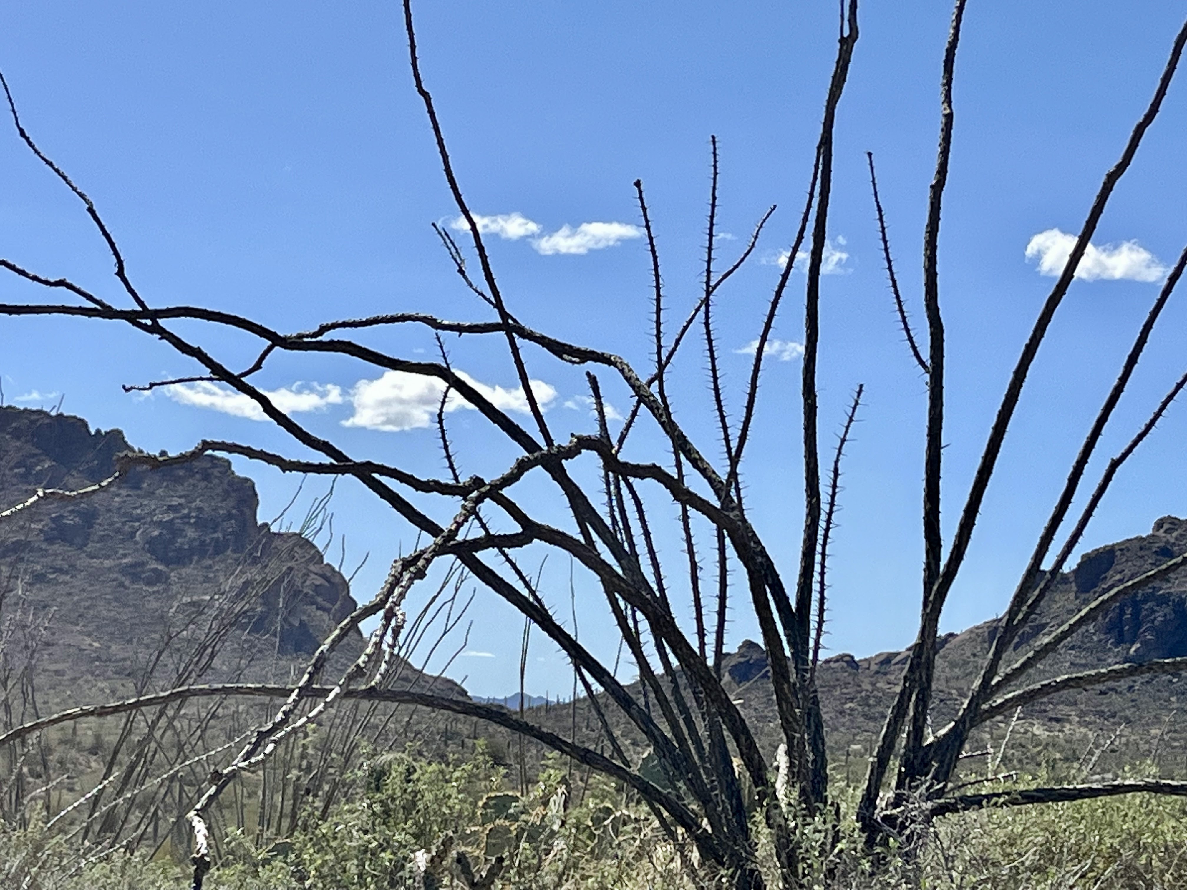 "One of my favorite past times is to go out into the Saguaro Monument, pick a trail and just walk into the sacred desert. Hearing the sounds, the silence, a hawk's wings above, the sound of wind moving through saguaro needles has its own special song. Suddenly, during monsoon, I hear the drumming of thunder in the distance, Thunder Beings, announcing their arrival. Initially, feeling some fear, I notice that my heart is responding with its own drumbeat.
